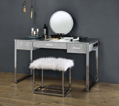 Afshan - 3-Drawer Vanity Set With Lighting - Gray High Gloss