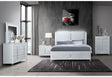 Transform your space with the Apollo Bedroom Collection by Global Furniture USA. This sleek ensemble, finished in light grey, features textured drawer fronts and acrylic legs, ensuring a modern, stylish appeal. With LED accent lighting on both the bed's upholstered headboard and the mirror, this collection is designed to be a showstopper.