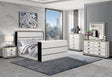 The Isabella White Bedroom Collection by Global Furniture is a luxurious, tech-savvy statement for the modern bedroom. Fully upholstered in a soft, elegant white fabric, each piece showcases a refined fluted design'delicately styled on the drawer fronts and more prominently featured on the headboard and footboard for added dimension and texture. This collection seamlessly blends style and innovation. The dresser, chest, nightstand, and mirror are all equipped with integrated LED lighting, enhancing the ambiance with a subtle, modern glow. The queen bed is the true showstopper'featuring headboard LED lighting, a footboard with a built-in 50" TV lift, a crystal-insert fireplace, and Bluetooth speakers, all designed to bring comfort and entertainment to the forefront of your bedroom experience. Whether you're looking for bold design, tech-forward features, or elegant upholstery, the Isabella Collection delivers it all with sophistication and flair.