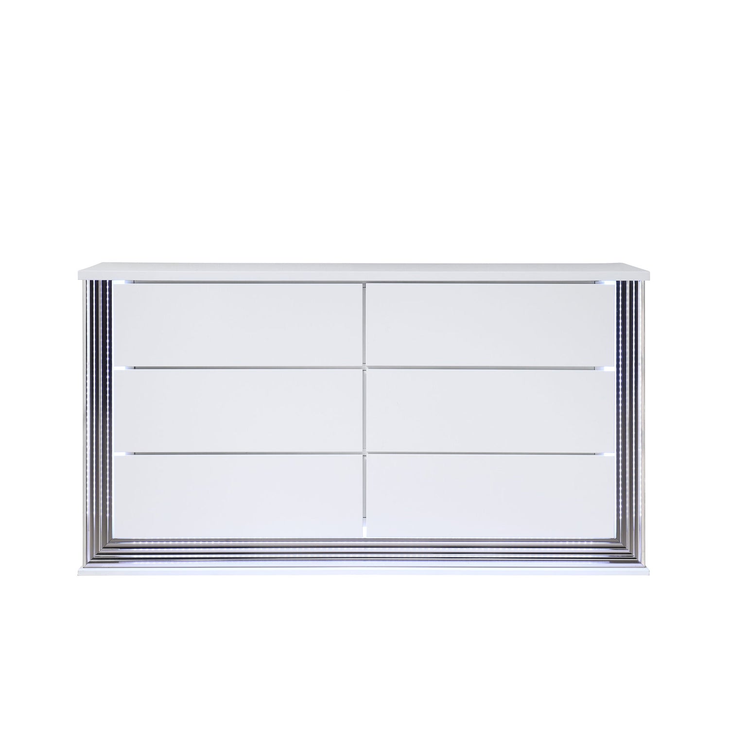 Moon - Smooth Queen 5 Pieces Bedroom Set With LED Accent Lighting And Marble Highlights - White