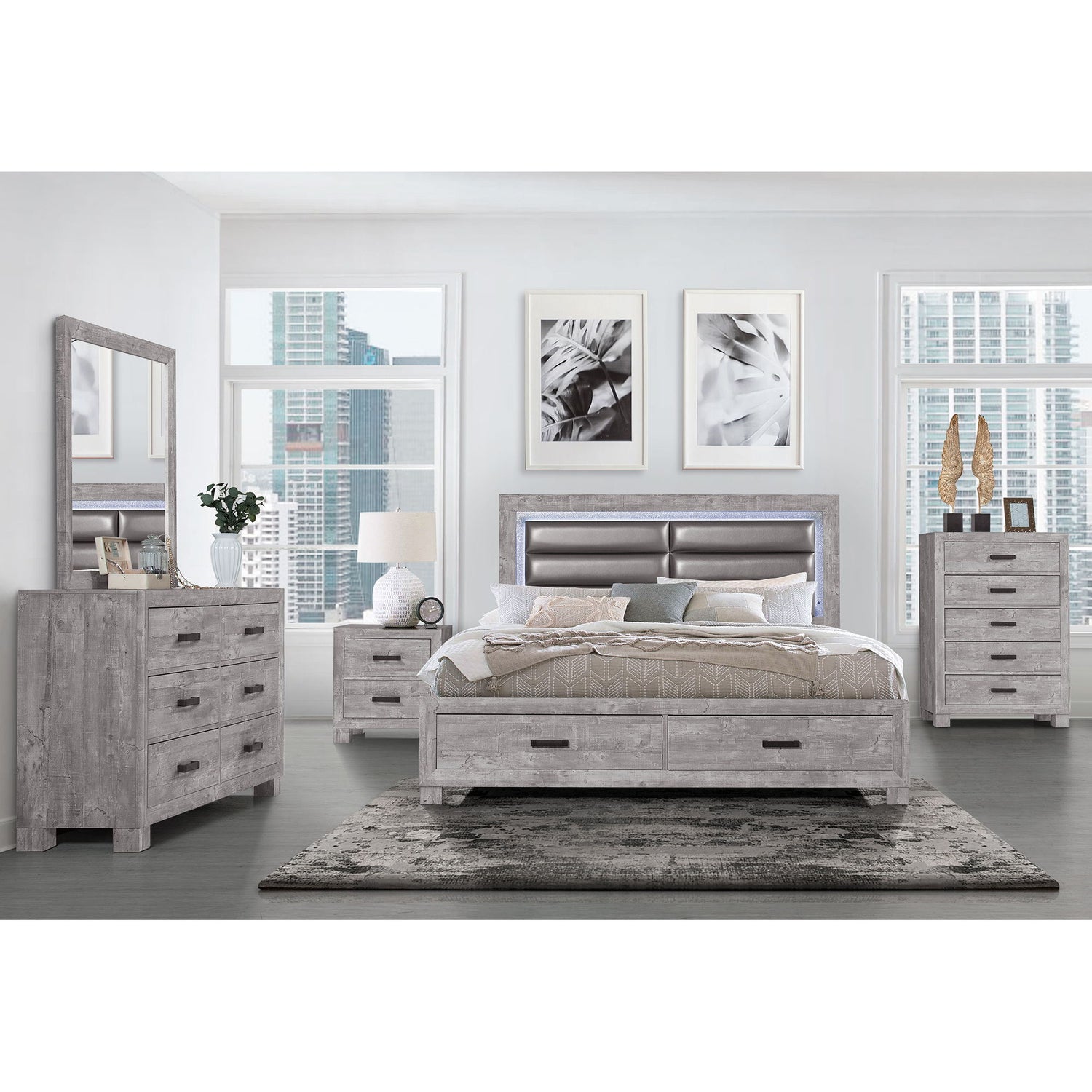 • LED Accent Lighting: The headboard is enhanced with LED accent lighting, offering a soft glow for added ambiance and functionality, with power controls on either side for easy access.