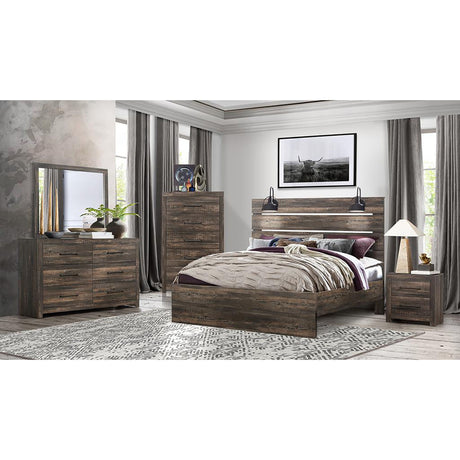 Uriuni - 5 Piece King Bedroom Set With LED Lighting And Panel Headboard - Gold / White
