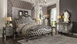 Versailles II - Queen Bed - Silver Synthetic Leather & Antique Platinum