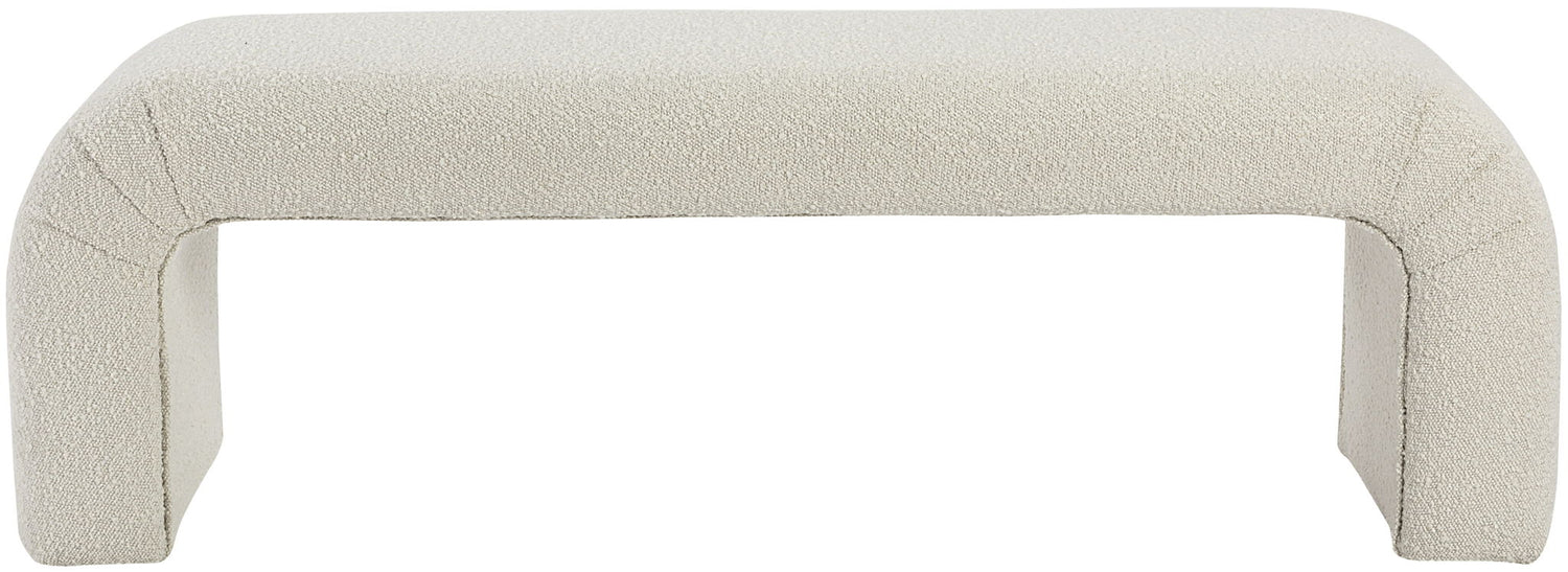Amp up your modern space while enjoying an additional seat where it's needed with this elegantly crafted Niagara boucle fabric bench. Soft, sumptuous boucle fabric covers this unusually shaped and eye-grabbing bench, giving a soft feel to the touch and adding to its comfort factor. This contemporary bench is perfect for positioning at the end of your bed for a look that wows, or use it in the entryway for a handy and convenient spot to sit while pulling on boots or taking off your shoes.