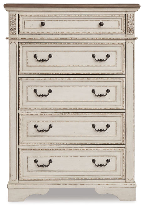 Realyn - Five Drawer Chest - White / Brown / Beige