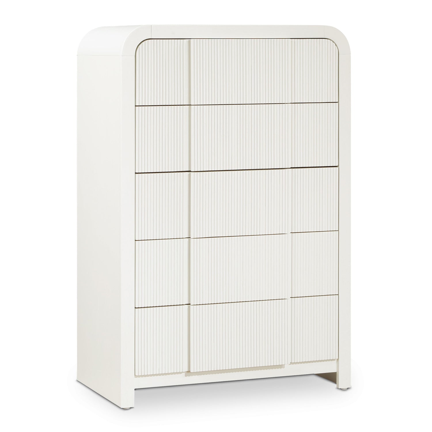 The Fluted Chest is a great way to enhance the decor of your room and elevate its style. The fluted drawer fronts highlights intricate detailing, while the arched shape of the chest provides an eye-catching design feature. The rich finish gives depth and character to the overall appeal.This piece not only serves a functional purpose for storage but also adds a touch of elegance to any living space.