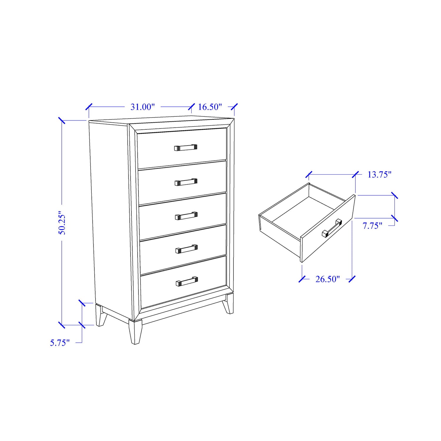 - Ample Storage: Equipped with five spacious drawers, the chest provides ample storage space to organize clothing, accessories, and other essentials.