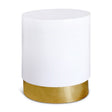 Give your living space a bold makeover with this breathtaking white lacquer metal table with a gold metal base from Meridian Furniture. Its round, contemporary design pairs perfectly with any existing modern furniture in your home. Use it as an accent piece, a main table, or a table in any room in your home. Its clean white color compares nicely with the gold metal base, which provides sturdy support in addition to appearing fabulous.
