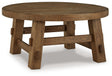 Mackifeld - Round Cocktail Table - Warm Brown is backordered and will ship as soon as it is back in stock.