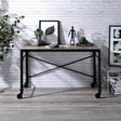 Rectangular Wooden Table TopMetal BaseNail Head AccentWheels IncludedIndustrial Style