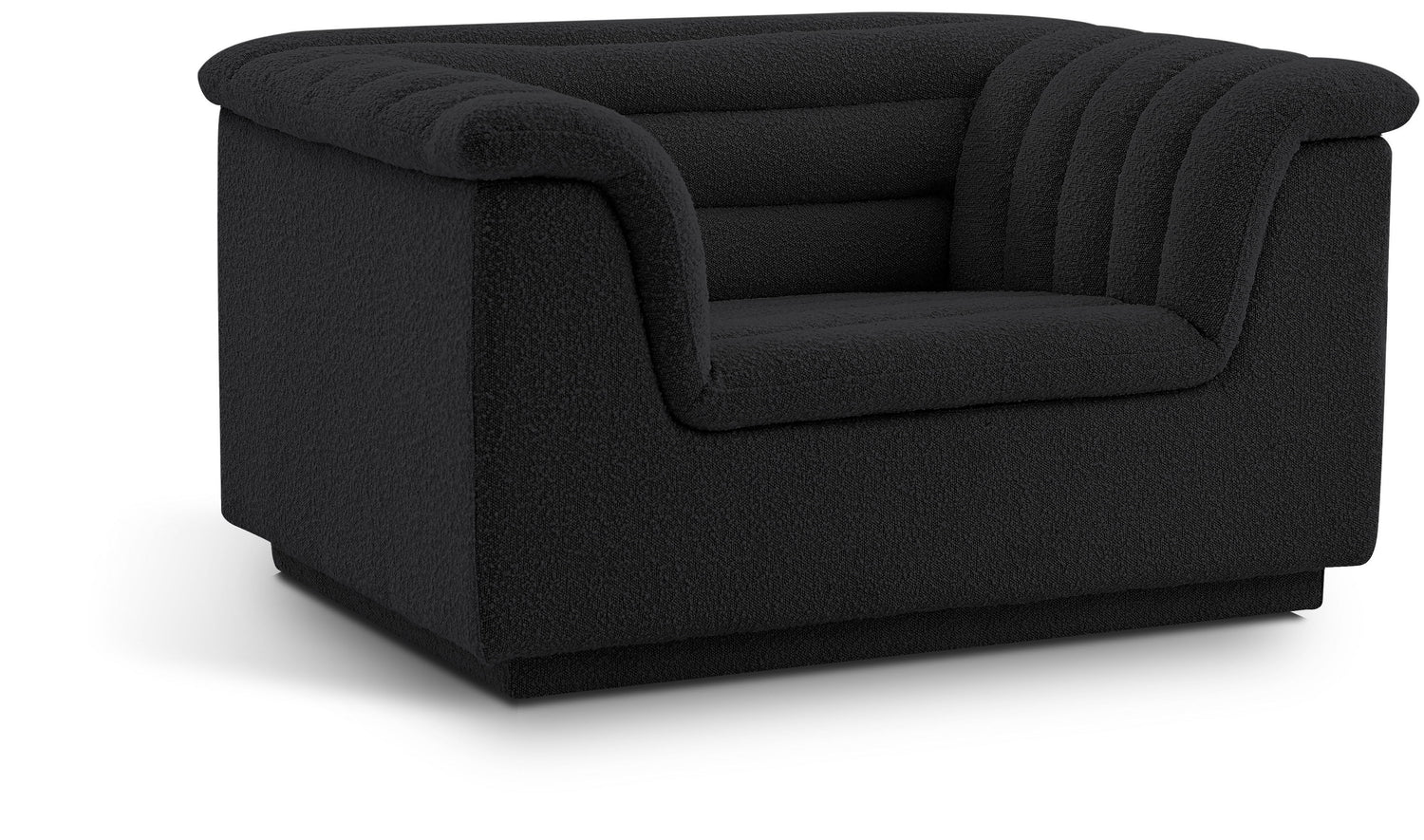 Give your room a much-needed rehab when you bring home this Cascade boucle fabric chair. The elegantly attention-grabbing design features a modern profile with curved arms deep horizontal channel tufting, so it wows from all angles. Upholstered in rich boucle fabric, this seat quickly becomes everyone's favorite spot for curling up with a good book or smart device. Thick foam padding ensures a cozy, body-hugging experience. while you watch TV or just relax.
