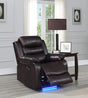 Brown Gel Leather, & Underlit LED, Motion Manual Reclining, & Drop Down Table, Storage Console, & Pocket Coil Cushions, Coordinated Stitching, Pillow Top Arms and Headrest, Backs Detach for Easy Delivery, Brown Gel Leather, Underlit LED, Motion Manual Recliner, Pocket Coil Cushions, Coordinated Stitching, Pillow Top Arms and Headrest, Backs Detach for Easy Delivery