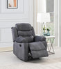 Gray Plush Fabric, & Dual Manual Reclining, Wall Hugger, Velvet Feel Fabric Material, Coordinated Stitching, Pillow Top Arms and Headrest, Backs Detach for Easy Delivery, Gray Plush Fabric, Manual reclining, Wall Hugger Capability, Coordinated Stitching, Pillowtop arms and Headrest