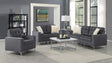 Gray Luxurious Velvet, Button Tufting, & Squared Arms, Sewn on Seat and Back Cushions, Reversible Accent Cushions, Silver Nail Head Trim Accents, Chrome Feet