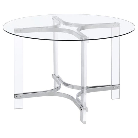 Keeling - 5 Piece Round Glass Top Acrylic Dining Set - Chrome