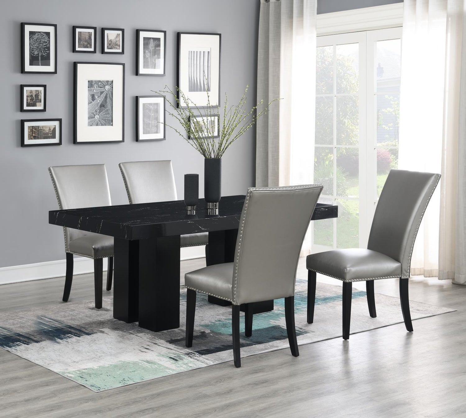 D133 - 5 Piece Dining Room Set (Dining Table And 4 Leather Chairs) - Silver
