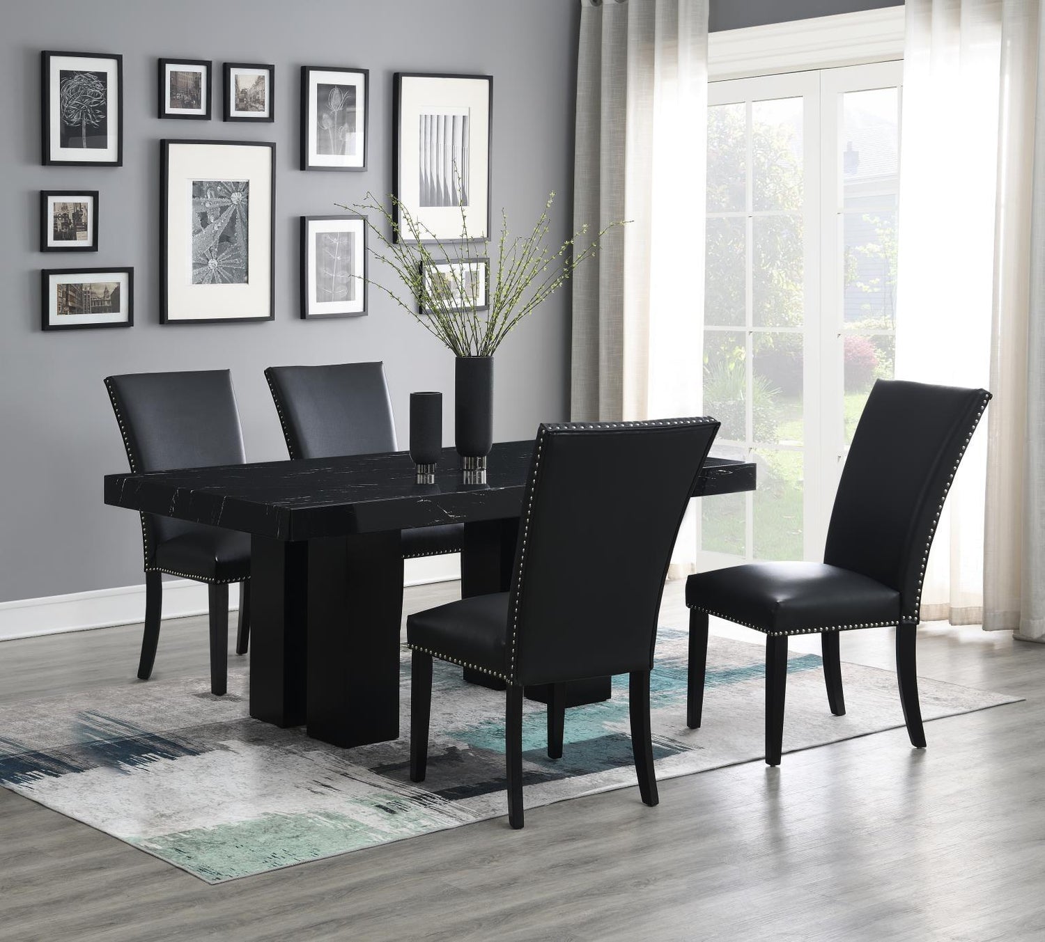 D133 - 5 Piece Dining Room Set (Dining Table And 4 Leather Chairs) - Black