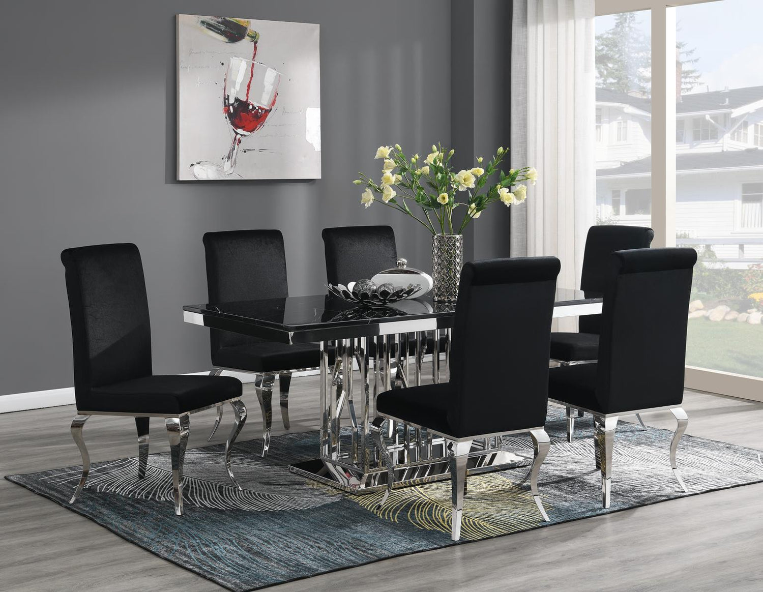 G-081-T-BLACK - 7 Piece Dining Room Set (Dining Table And 6 Velvet Chairs) - Black