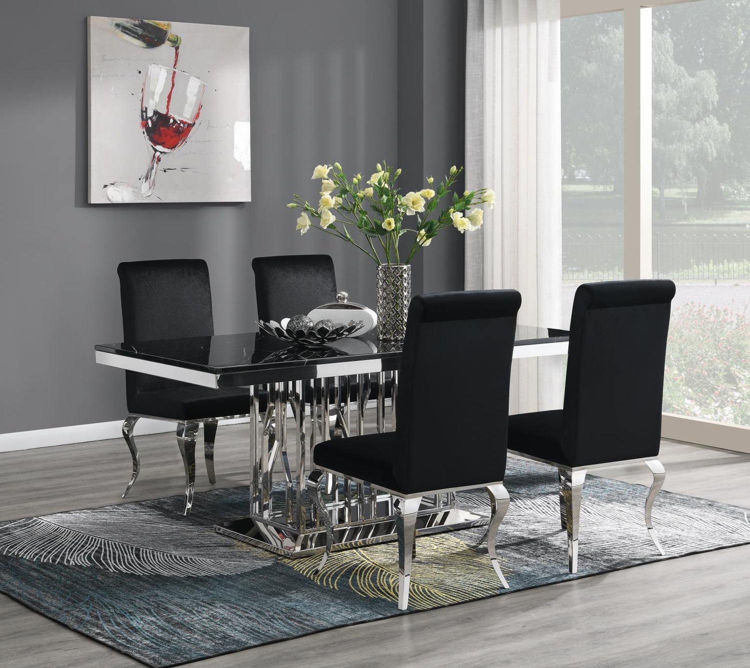 G-081-T-BLACK - 5 Piece Dining Room Set (Dining Table And 4 Velvet Chairs) - Black