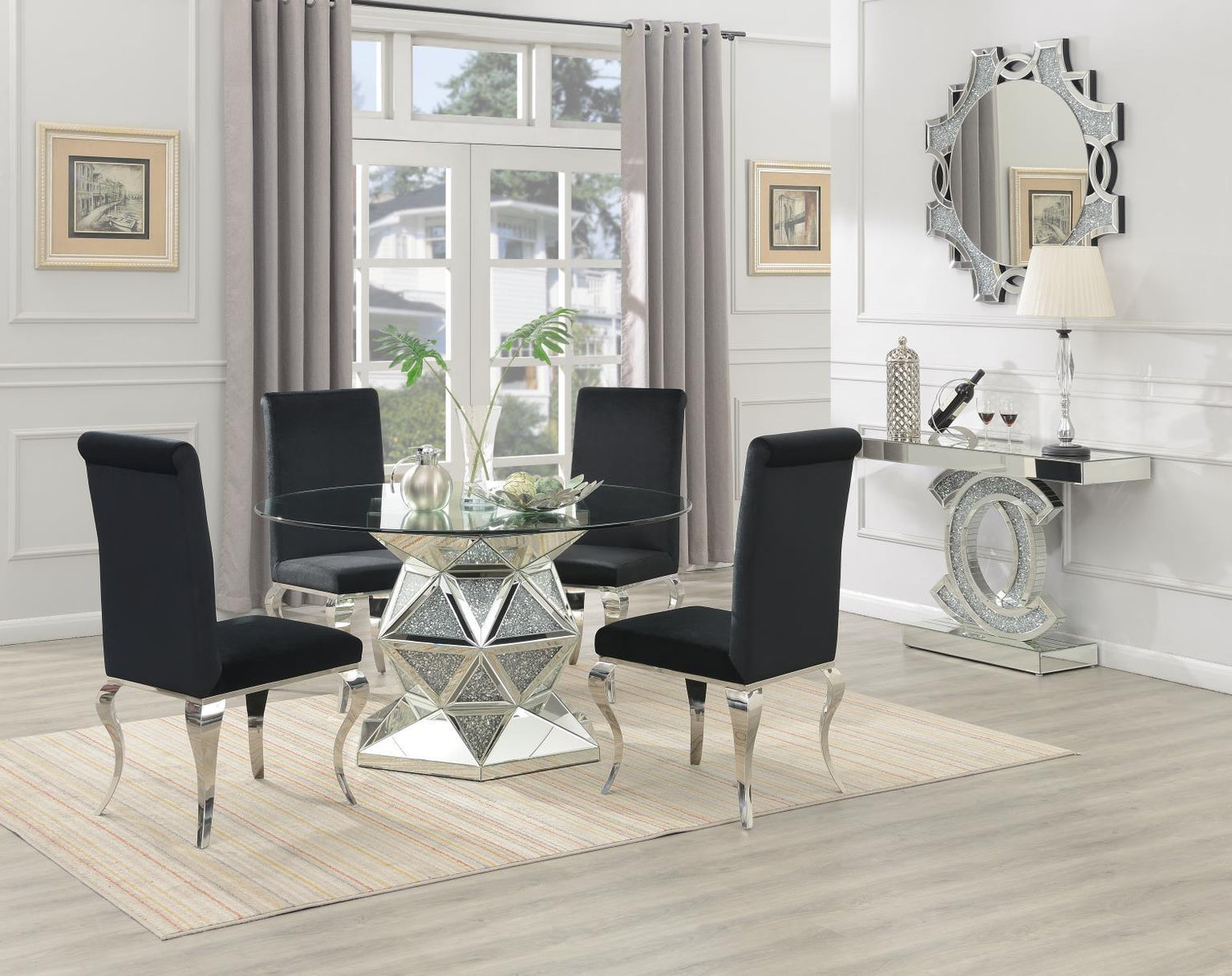 G-102 - 5 Piece Dining Room Set (Glamour Dining Table & 4 Velvet Chairs) - Black