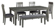 Hallanden - 6 Pc. - Extension Table, 4 Side Chairs, Bench - Black / Gray