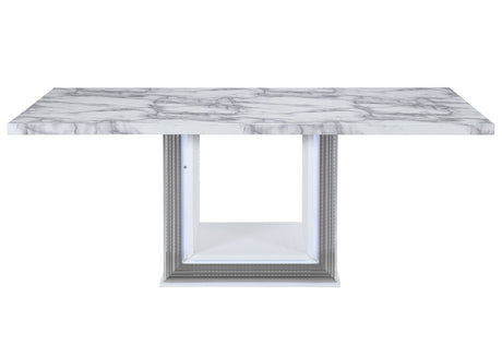Ylime - 5 Piece Dining Room Set (Marble Dining Table & Four Dining Chairs) - Dark Gray / White