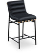 Kick back and relax with a drink in your hand with this Burke black faux leather counter stool. Featuring soft faux leather upholstery and faux leather straps, this counter stool is cozy and stylish. Its matte metal frame provides sturdy support so you can enjoy this stool for years to come. A white oak veneer metal dowel is tucked firmly in place beneath the front of the stool, providing extra support and added style.