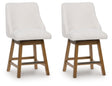 Cabalynn - Upholstered Swivel Barstool (Set of 2) - Oatmeal / Light Brown