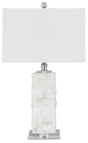 • Made of alabaster and acrylic with a rectangular hardback shade