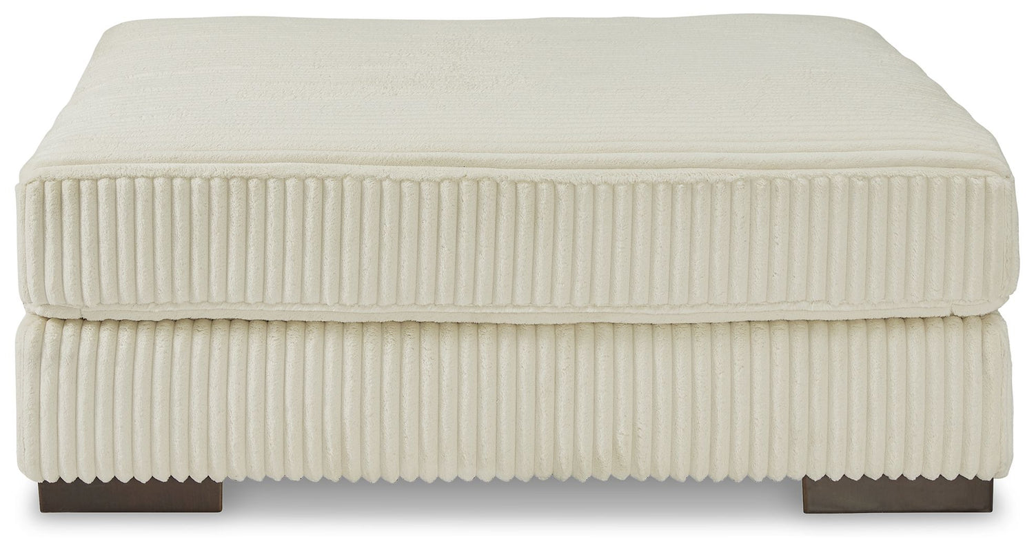 Plush and posh. Showcase your eye for on-trend texture with the statement-making cord upholstery of this oversized accent ottoman. Its stunningly soft fabric entices in an ivory hue, complementing contemporary color palettes. Let your feet sink into the spacious cushion and plan to stay a while—this cozy living room ottoman highlights your high-end approach to comfort and style.
