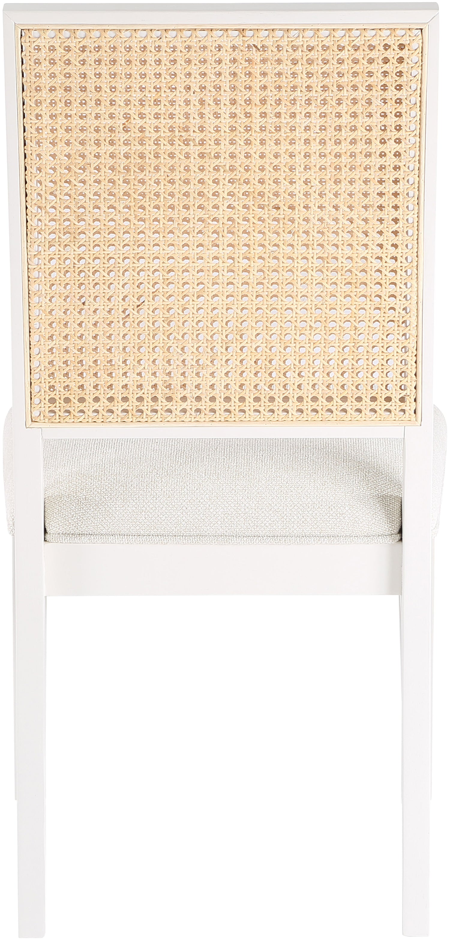 Give your dining space a traditional makeover with this Butterfly dining chair from Meridian Furniture. Its solid rubber wood frame features a sleek finish, and its cushion is upholstered in soft linen-like polyester fabric, providing comfort and complementary colors to your dining table. Its natural cane back is reminiscent of a mid-century design, so you can relax in style as you dine, and making this piece right at home in any living space.