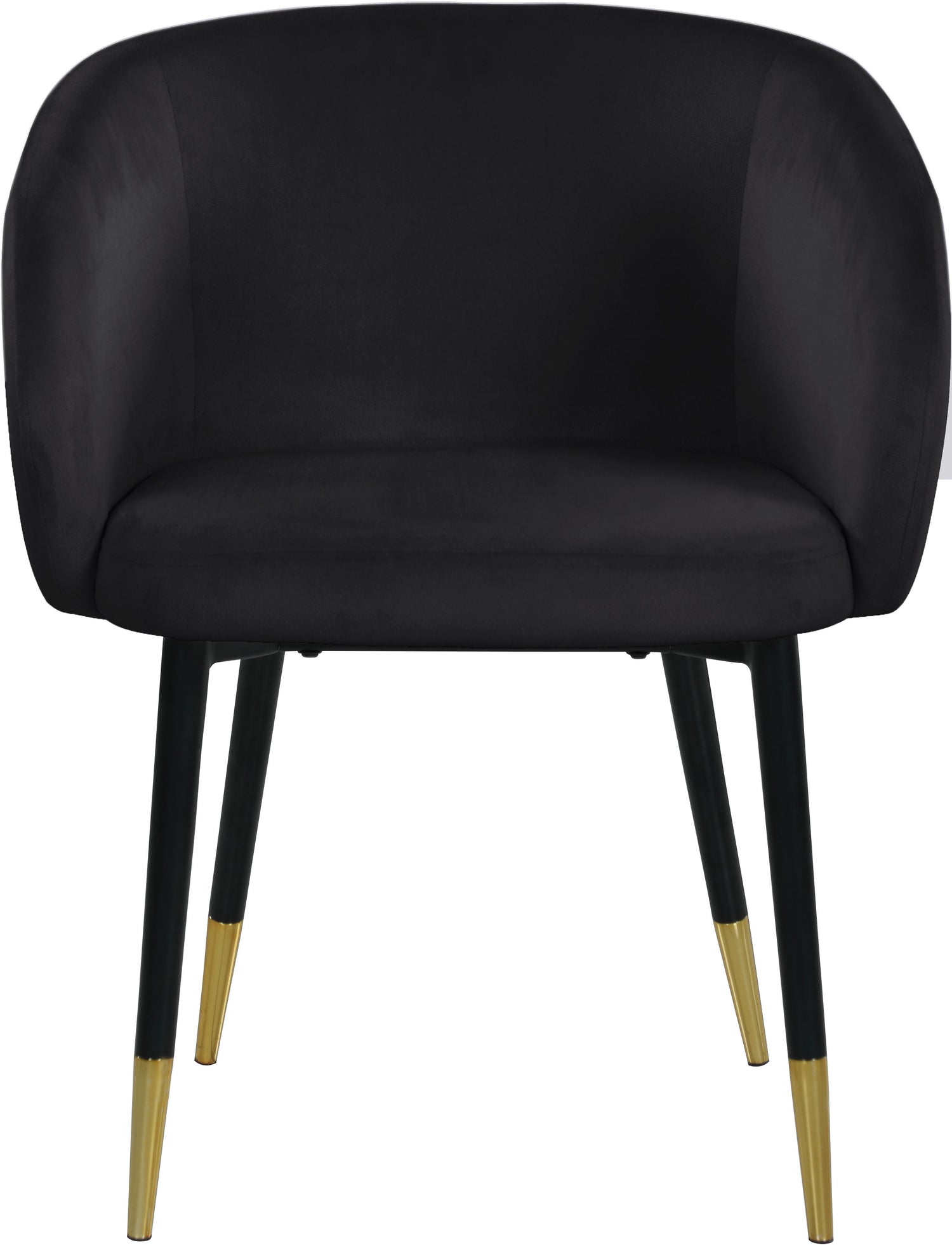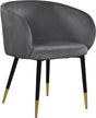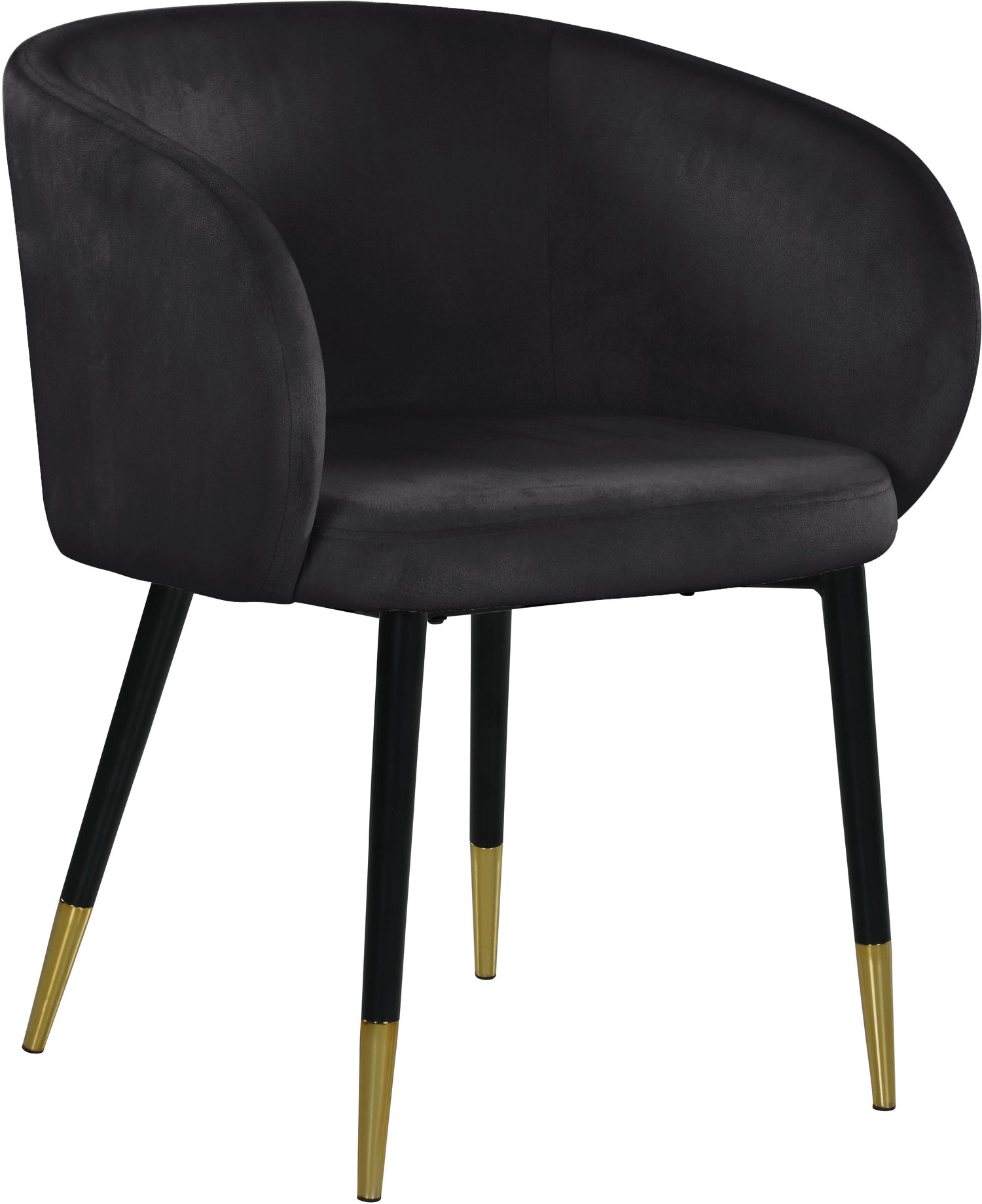 Redefine your living space with this modish Louise Dining Chair. Featuring stunning velvet upholstery and a curved back, this chair offers a comfortable seat for you to relax in. With a frame supported by metal legs with tips, this contemporary chair is not only sturdy and eye-catching; it's stylish appeal and durability is sure to make it a favorite in your home for years to come.