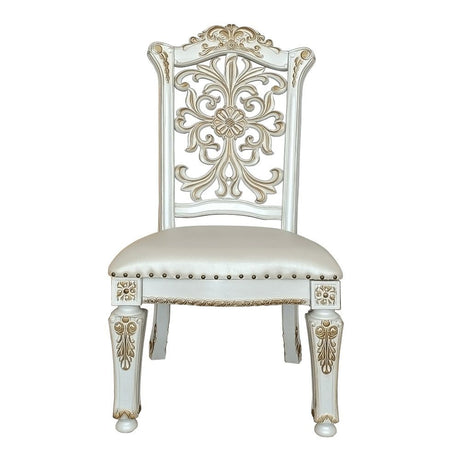 Adara - Side Chair (Set of 2) - Pearl White Synthetic Leather & Antique White