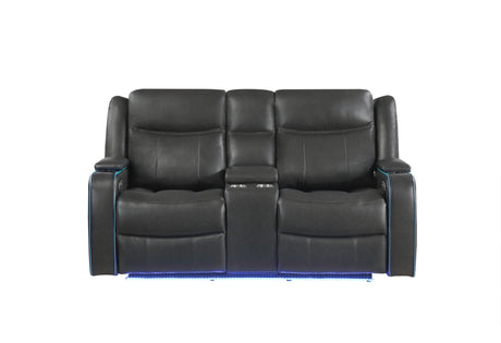 Raize - 10 Power Console Reclining Loveseat With LED - Gray