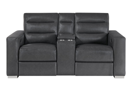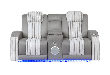 U8000 - Power Reclining Loveseat With Console, Power Headrest, LED Light, Bluetooth Speaker - Gray