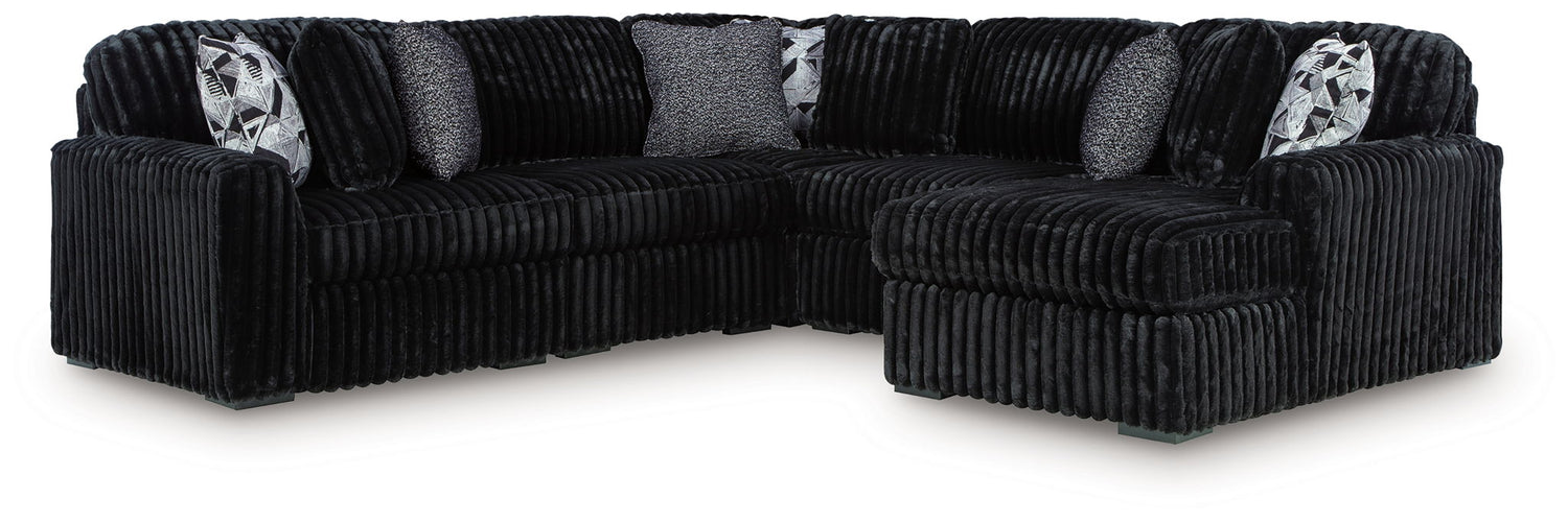 Midnight-Madness - 4-Piece Sectional With Raf Corner Chaise - Onyx