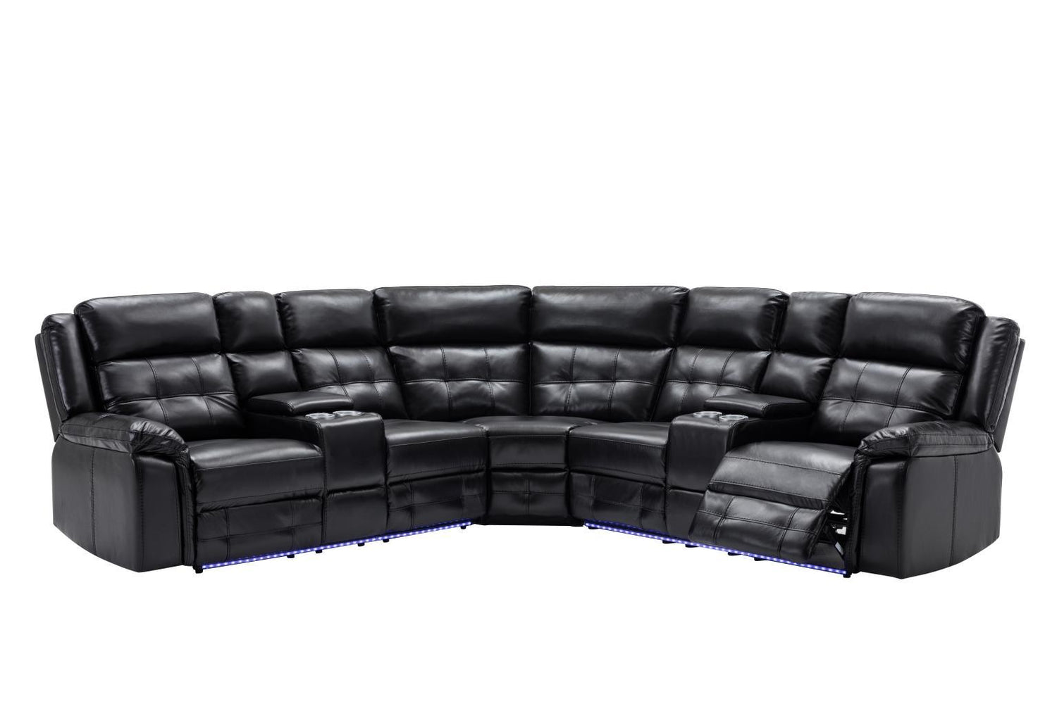 Black Air Gel Leather, Power Recliners, LED Lit Cup Holders, & LED Under Glow, Complete Wall Hugger, Two Storage Compartments, Pillowtop Arms