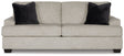 Laid-back luxury meets neutral practicality in this sofa. Taking its cues from contemporary design, the clean-lined piece is outfitted with angular arms for a layer of geometric expression. Softly upholstered, sizable cushions keep you comfortable, while black faux fur accent pillows bring a touch of soft glam. With this sofa, winning style and superb functionality go hand in hand.
