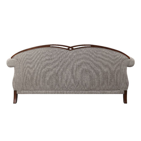 Miyeon - Sofa With 5 Pillows - Fabric & Cherry
