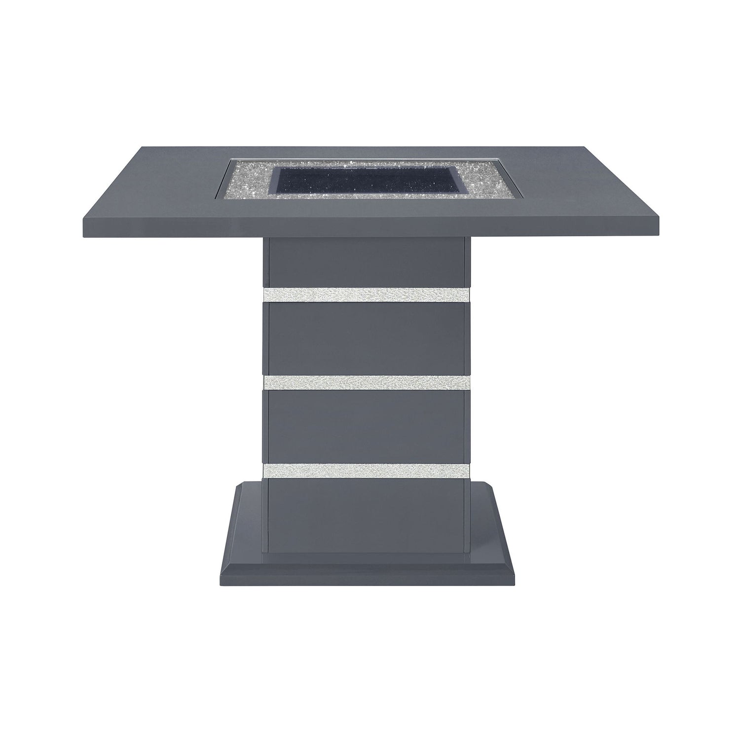 - Modern Design: The ARIYA BAR TABLE features a contemporary design with a high gloss finish and a clear glass inlay, making it a stylish addition to any modern space.