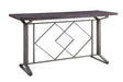 Transform a boring traditional dinning room into a industrial home bar that allow your friends to eat and drink to their heart's content. The Evangeline Counter Height Table employs a sense of industrial rawness in every detail, including distressed textures, metal structure, minimalistic design. The rectangular wooden table top is finished in a salvaged brown to form a weathered surface. Below the table top is a geometric metal base, creating a striking silhouette to makes a bold statement. Give your dining room an instant makeover with The Evangeline Counter Height Table.