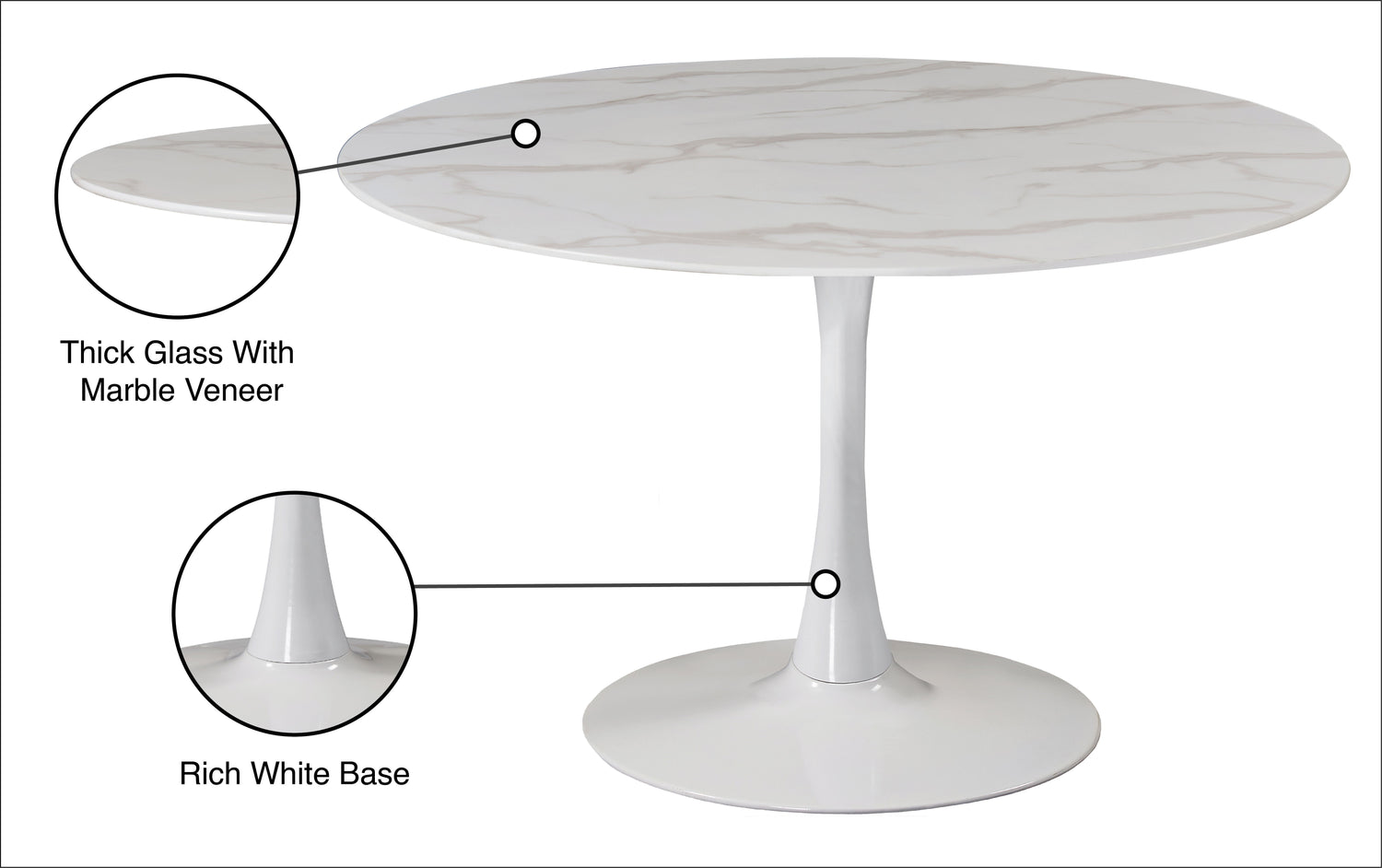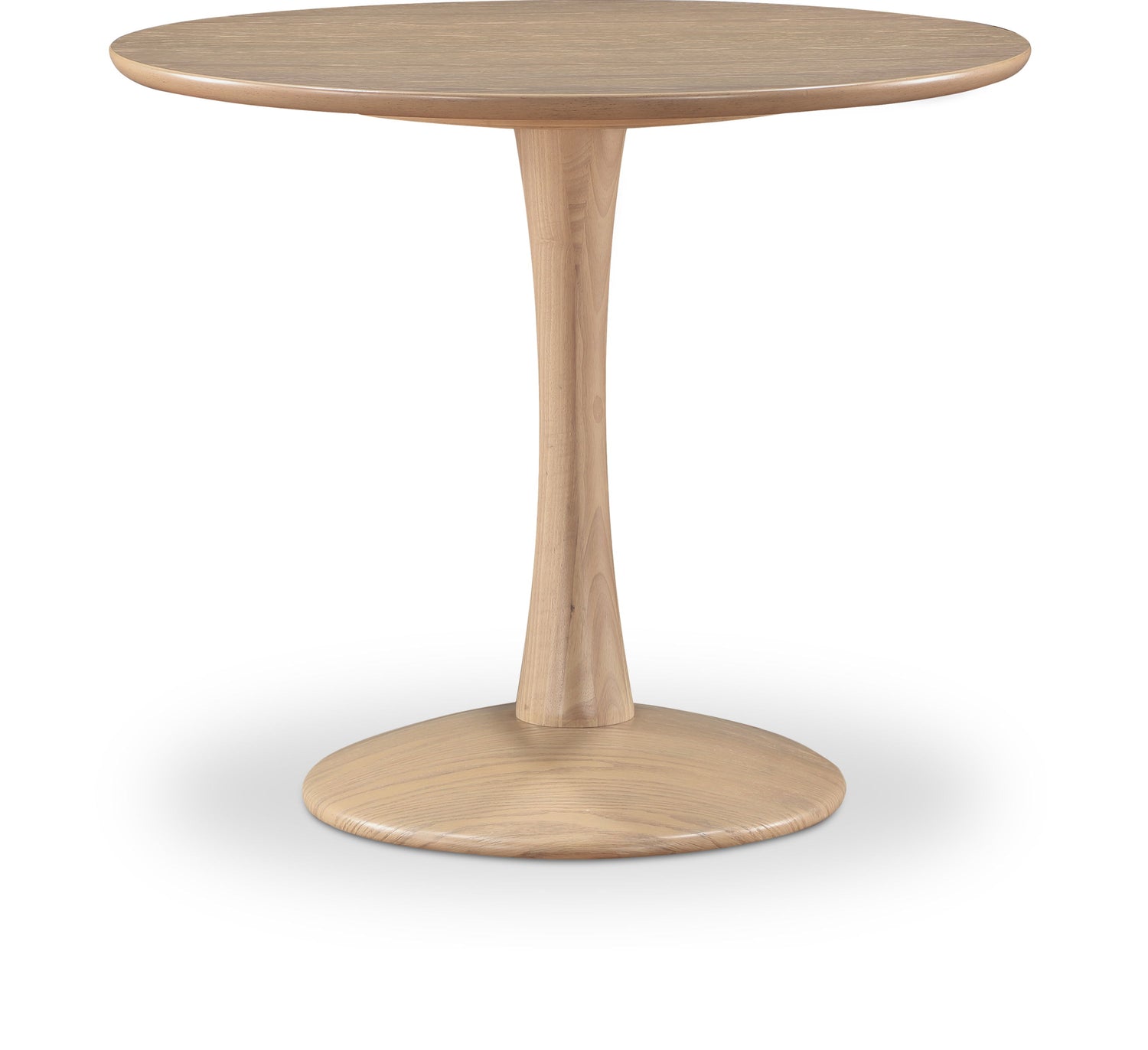 Set the stage for small, intimate dinners for just the two of you with this Tulip Dining Table. Its cozy yet chic design is ideal for small spaces, featuring a timeless pedestal style that offers ample legroom for comfortable dining. This elegant and sleek table comes in a rich finish, making it a great addition to modern dining spaces and eat-in kitchens. Constructed with solid wood, oak veneer, and natural wood grain variation, it has a substantial feel, while its midcentury modern design elements ensure it stands out.