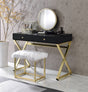 Adao - Vanity Mirror & Stool - Faux Fur, Mirror, Black & Brass