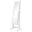 This dual-purpose jewelry Cheval mirror adds practicality to style. It's constructed five feet high to give you plenty of area to check your look from head to toe. Opening up to a green felt-lined storage with enough shelves and a small drawer, it also serves as a jewelry armoire. A four-inch deep jewelry box is built in to hold valuable accessories like watches and bracelets. The mirror is finished in white and tilts for convenience.