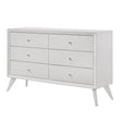 Minimalist and modern, the Cerys dresser offers sleek clean lines for a contemporary take. This dresser features six spacious drawers to help you keep a tidy bedroom. Sitting on stylish angled squared wooden tapered legs that provide a modern visual appeal. The white finish makes for the perfect blank canvas for any room.