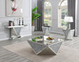 8mm Mirror Overlaying MDF and Particle Board, Crushed Mirror Glass Accents, Squared Mirror Tabletop, Triangular Shape Table Base, V Shape Side Design