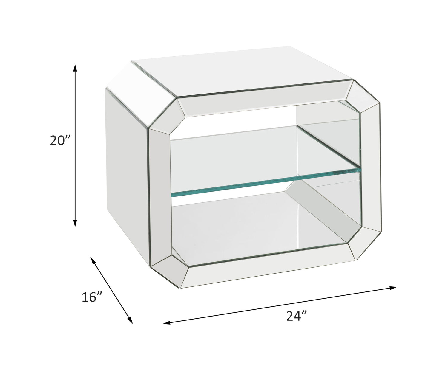 Beauty, simplicity, and functionality combine to create the Meria Accent Table that will truly become one of the main focal points in your room areas. Clean-lined table frame in mirrored finish creates a modern glamour look. There is a tempered glass shelf that provide a perfect space to spread your magazines. Add sparkle into your life with this striking Meria Accent Table.