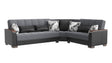 Ottomanson Armada X - Upholstered Convertible Wood Trimmed Sectional With Storage - Gray/Black PU Polyester